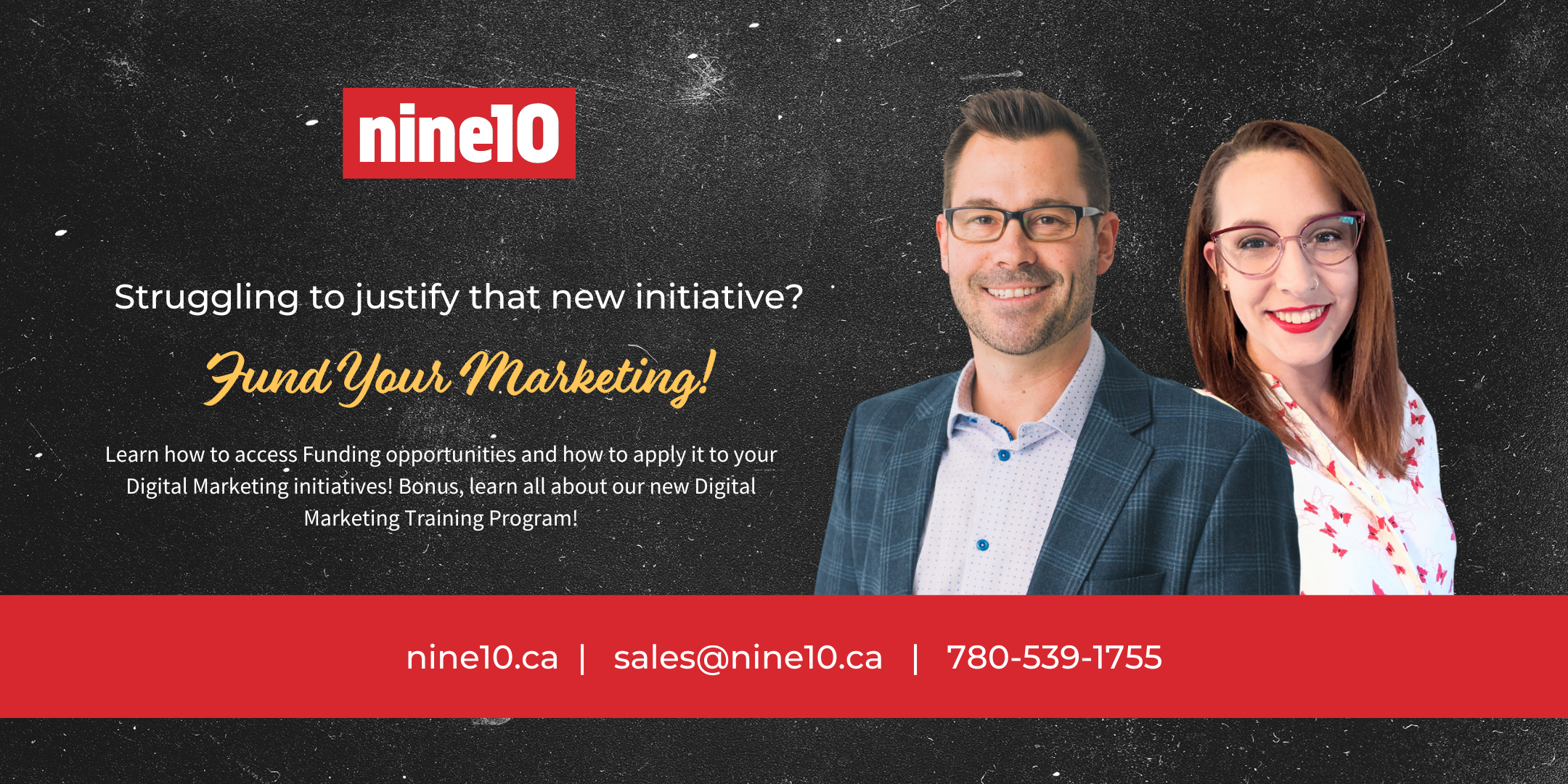 Come chat with us and we’ll talk about how to you can fix BOTH those problems. We can help you access funding to help you with your newest marketing initiative and we can teach you how to build your brand presence online through our brand new Digital Marketing training program.